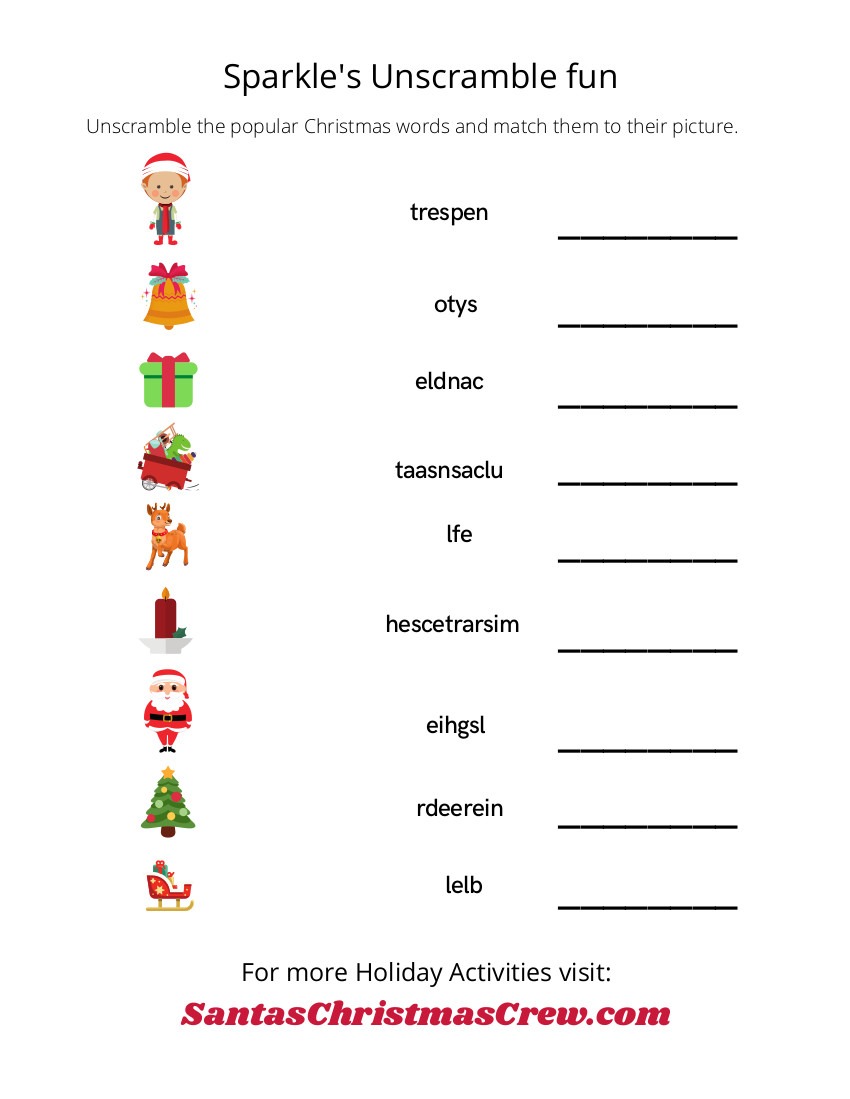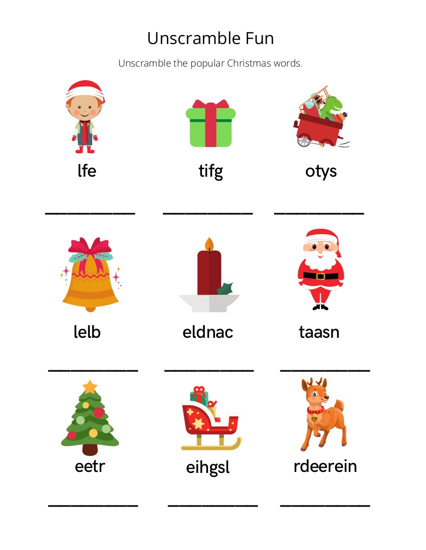 Use the pictures to help you unscramble each of the popular Christmas words.