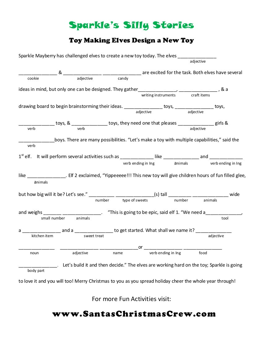 Insert the reccomended words and enjoy the funny story you create. Try it with friends or family for extra laughs.